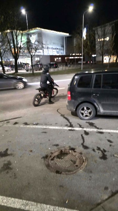 Motociklininkas sustojo, bet apsisprendė bėgti – nusistūmęs motociklą į gatvę, jis vėl ant jo sėdo ir nuvažiavo.