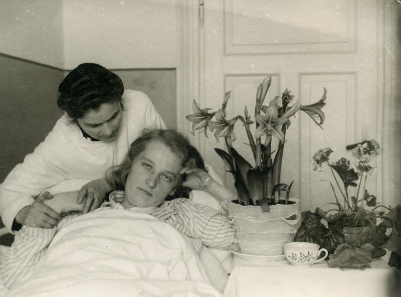 9. V.Šleivytė (dešinėje) ir sirgdama save fotografavo.