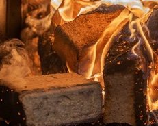 Įkaitus krosnies sienelėms, ėmė smilkti briketai, tada pasirodė ir liepsnos.