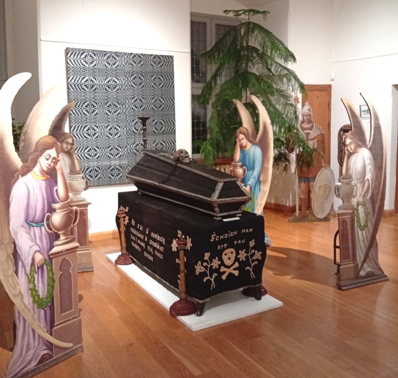Senąjį katafalką su karstu iš Dilių koplyčios ekspozicijoje saugo apeigoms tarpukariu Pabiržės Švč. Trejybės bažnyčioje naudotų angelų skulptūros. Pagal tikėjimą, mirusiojo sielą, kai kunigas užgieda „Viešpaties angelą“, angelai palydi į jai skirtą buveinę.