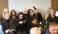 Paskui piketuotojai su plakatais ir gėlėmis nuėjo pasiklausyti tarybos posėdžio, tačiau mažoje salėje tilpo ne visi, kiti jiems rūpimo klausimo svarstymo laukė stovėdami už salės durų ir ant laiptų.