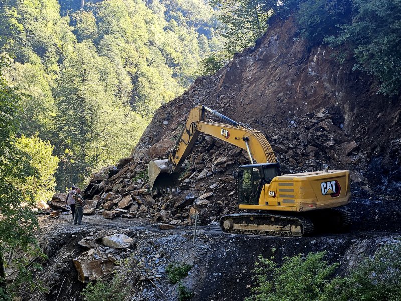 Jau ne vienus metus šis pavojingas kelias yra tvarkomas. Ir mums juo važiuojant teko valandėlei stabtelti, kol ekskavatorius nuvers bei nugramdys dalį uolos ir praplatins toje vietoje važiuojamąją dalį. Ekskavatorininkas atrodė bebaimis.