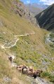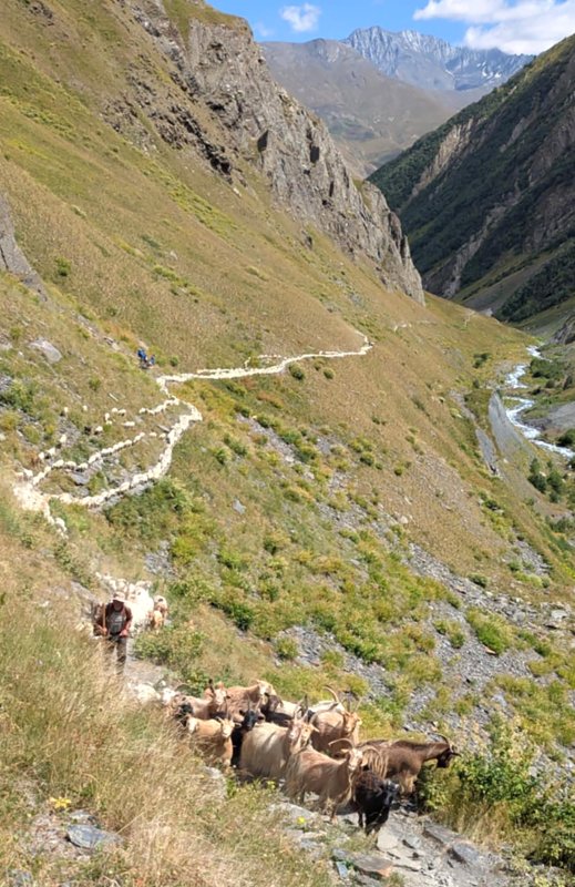 Leidžiantis žemyn pamatome toli apačioje daug judančių baltų taškelių. Kai prieiname arčiau suprantame, kad keli piemenys varo aukštyn į pievas ganytis viso slėnio gyventojų avis.