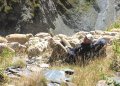 Takelis siauras, vienoje pusėje – skardis, kitoje – status šlaitas, avys baidosi, todėl susėdame ant šlaito ir laukiame, kol banda praeis.