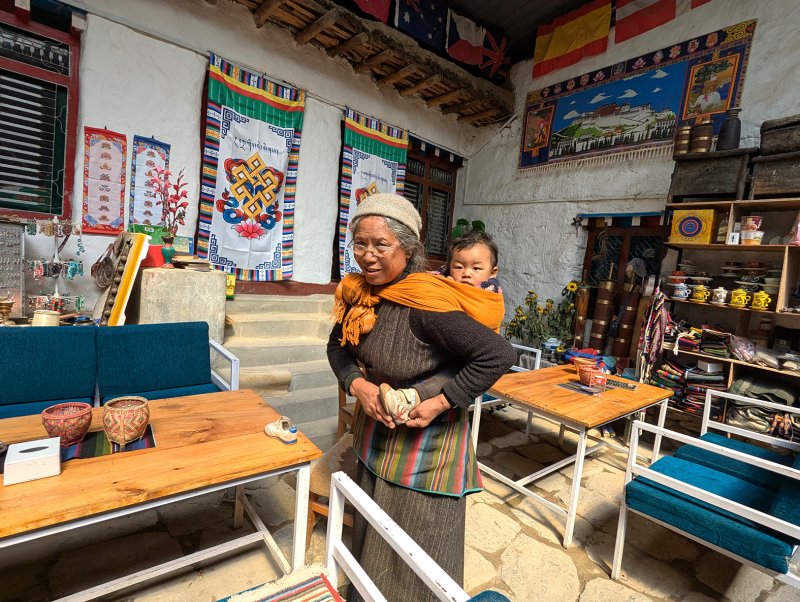 Vis tiktai mums įdomiau tradiciniai jų gėrimai, tad dar paprašome ir tibetietiškos sviestinės arbatos. Ja nesusižavime, nes ne mūsų gomuriui – sūri ir su jako sviestu. Bet šiaip taip susiurbčiojame – vis bus daugiau jėgų rytdienos žygyje per kalnus.