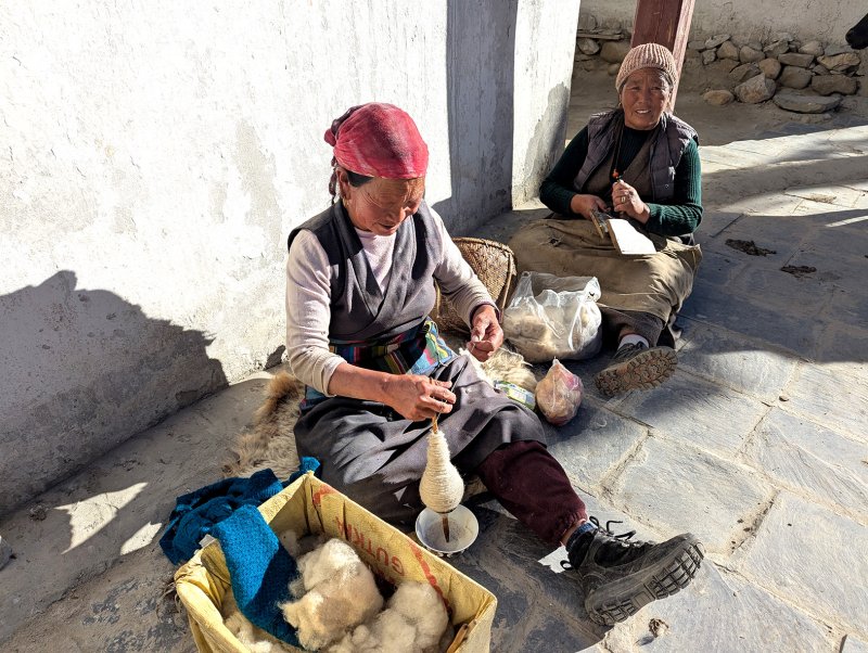 Vienos moterys verpia siūlus iš kuodelio vilnos, kitos pasikeisdamos kažką daužo su grūstuvu storuose metaliniuose induose, o trečios tiesiog miega ar… naršo telefonu.