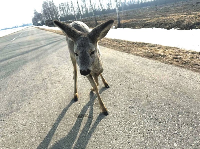 1. Spėjama, kad jauniklė prisiėdė per daug žieminio rapso, todėl apdujo ir išbėgusi į kelią elgėsi drąsiai.