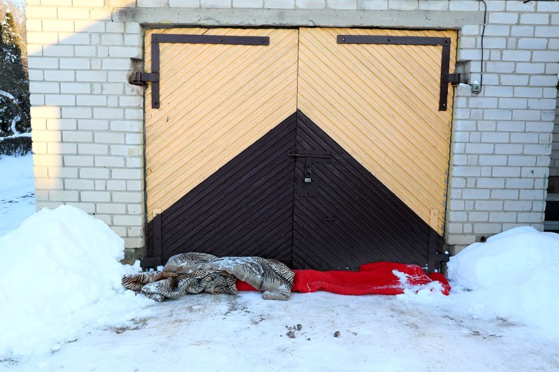 Duris iš vidaus vyras apkamšė skudurais, kad į garažą patektų mažiau šalčio.