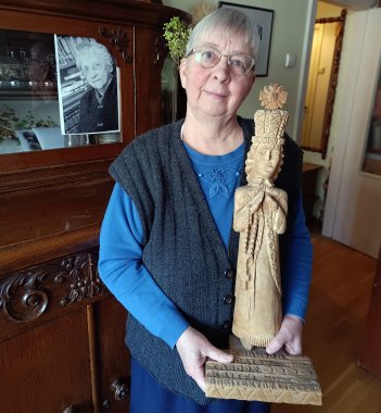 Kartu V.Stonytė muziejui padovanojo ir dailininko Vytauto Ciplijausko medinę skulptūrą „Kanklininkas“.