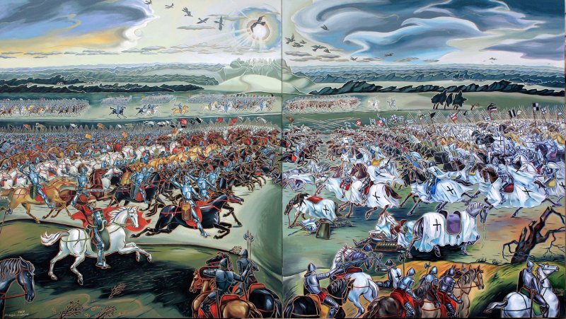 Įspūdingai dideli ir kiti du paveikslai, kuriuose vaizduojami Oršos ir Žalgirio mūšiai. Pastarasis irgi yra dviejų dalių.