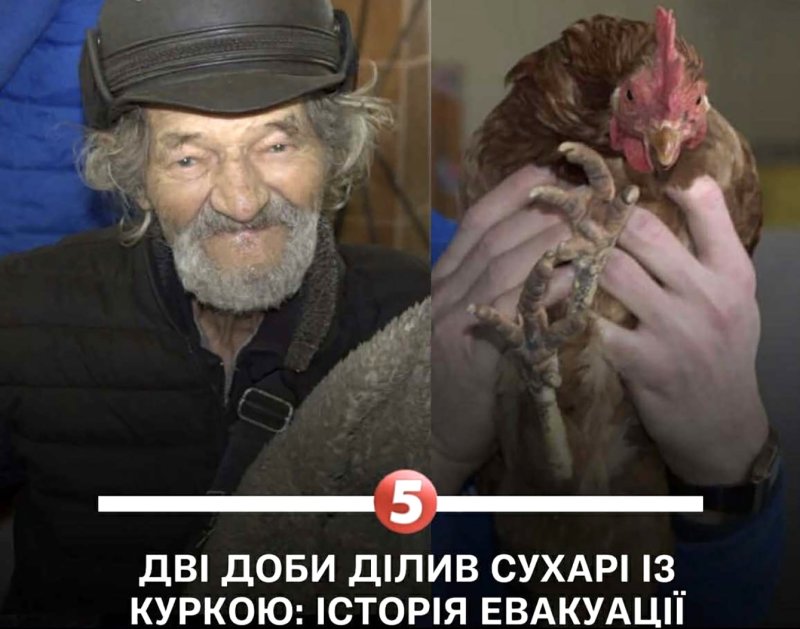 Neseniai visą šalį apskriejo istorija apie 89 metų senolio Konstantino bėgimą iš pafrontės drauge su mylima vištele. Vyriškis papasakojo žurnalistams, jog dvejus metus šnekėjosi vien su vištele, nes visi kaimynai išbėgo iš kaimelio netoli Dobropilės Donetsko regione. Jis išvykti nusprendė tik po to, kai dronas pataikė į namą ir šis sudegė. Konstantinas dvi dienas senu žiguliu pamiškėmis vyko pas saviškius ir mito vien džiuvėsiais, dalį jų atiduodavo mylimai vištelei.