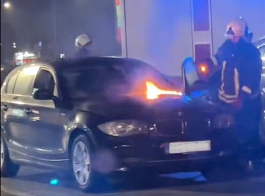 Penktadienio vakarą Panevėžyje, Klaipėdos gatvės prekybos centro aikštelėje, liepsnojo lengvasis automobilis BMW.