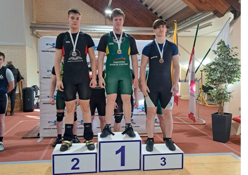 Trečiąsias vietas iškovojo Rokas Mikėnas (svorio kategorija iki 45 kg; 12 kg ir 17 kg), Simas Karalius (svorio kategorija iki 55 kg; 26 kg ir 35 kg) ir Kernius Šapys (svorio kategorija iki 70 kg; 45 kg ir 50 kg).