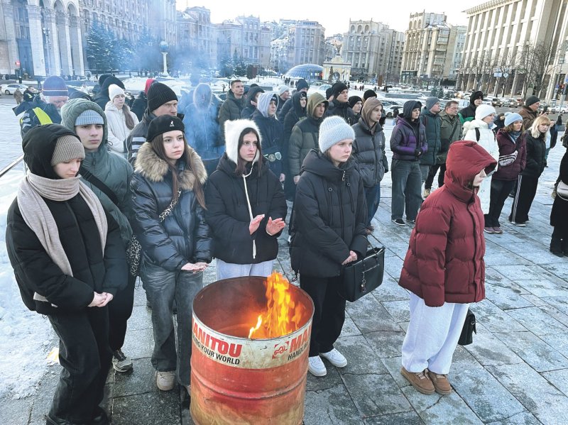 3. Per renginius žuvusių karių atminimui Kyjive dega laužai, kad žmonės galėtų susišildyti.