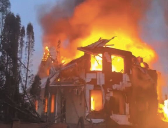 6. Kyjive dronas pataikė į namą, jo šeimininkai sunkiai sužeisti dabar gydomi ligoninėje.