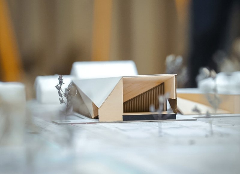 Ekspozicijoje galima pamatyti ir architekto Vytauto Putnos darbą – būsimąjį atvirą jaunimo centrą Smilgių miestelyje.