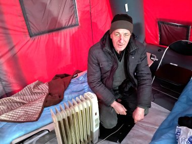 Prie nešildomų namų išdygo palapinės, kuriose galima pasišildyti, gauti šiltos arbatos, įkrauti telefonus iš prijungtų dyzelinių generatorių.
