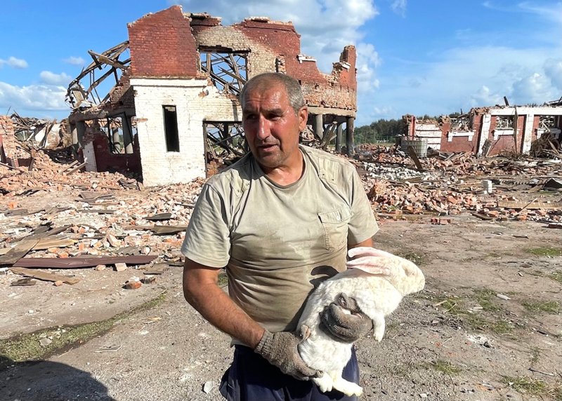 5. Triušis vienintelis išliko gyvas sugriautoje fermoje šalia Charkivo.