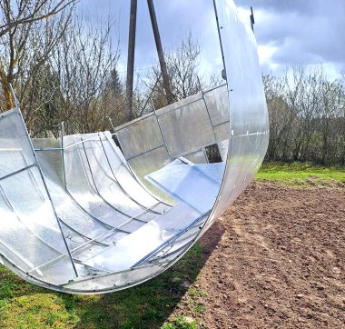 Vėjas šiltnamį su visais į žemę įkastais įtvirtinimais išrovė lyg šapą, pervertė per tvorą, sulankstė ir nubloškė į kaimynų sklypą.