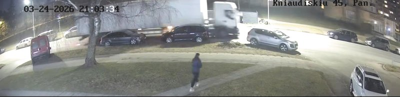 Vos žudiku kelyje netapusio pažeidėjo kelionę užfiksavo vieno Kniaudiškių gatvės daugiabučio namo teritoriją stebinčios vaizdo kameros. Įraše matyti, kad palei gatvę šunį vedžiojanti moteris, išgirdusi triukšmą, bėgte pasileidžia į pievą. Kita praeivė irgi skubiai traukiasi kuo toliau nuo gatvės.