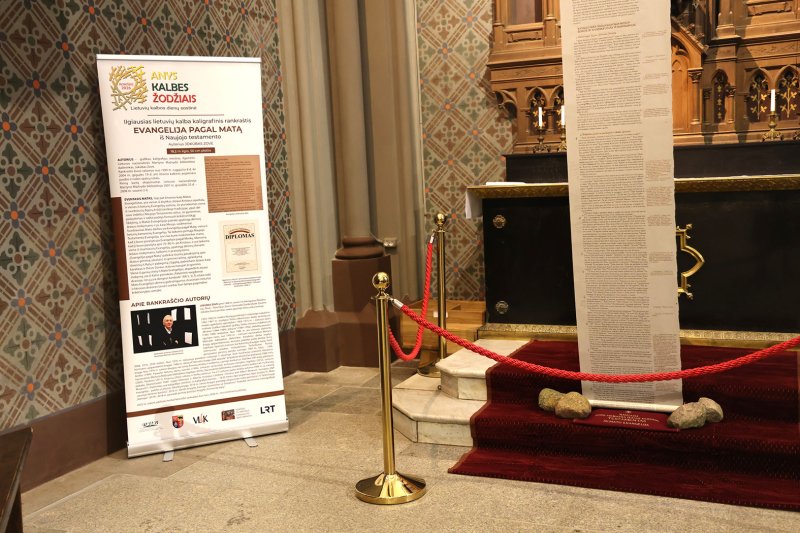 Paklausta apie didžiausius iššūkius, bibliotekininkė paminėjo ilgiausio kaligrafinio rankraščio lietuvių kalba ekspoziciją. Tai neeilinis objektas – ant ištisinio kalkinio popieriaus juodos ir rudos spalvų rašalu perrašyta „Šv. Mato evangelija“.
