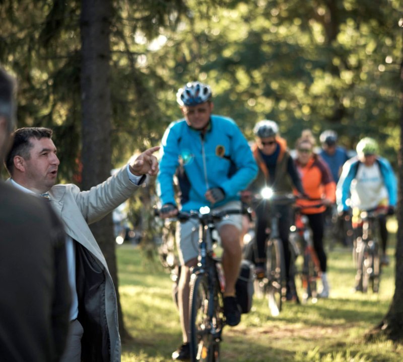 5. G.Balčiūnaitis dviračių žygio dalyviams priminė svarbiausius krašto istorinius įvykius.