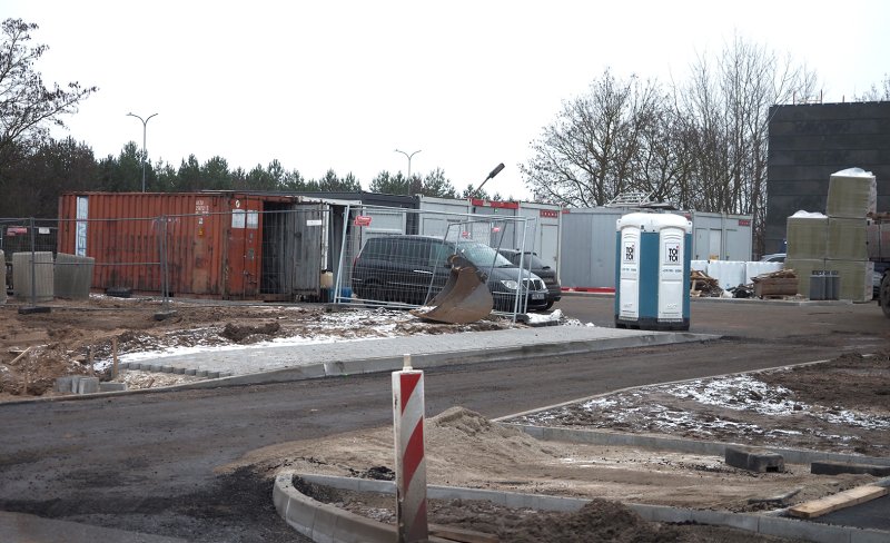 Statybvietė aptverta, bet dieną, kai vyksta darbai, darbininkai dalį tvoros nukelia ir patraukia į šalį, o po darbo valandų vėl sustato atgal į vietą.