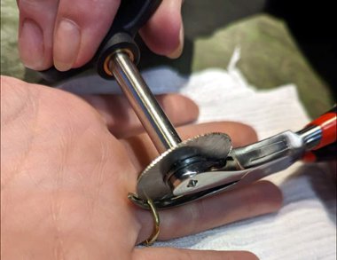 Viską teko atlikti itin kruopščiai, nes žiedai jau buvo beveik įsispaudę į odą. Plaštaką gelbėtojai apdėjo šlapiais popieriais ir už žiedų užkišo pagaliuką, kad susidarytų tarpas.