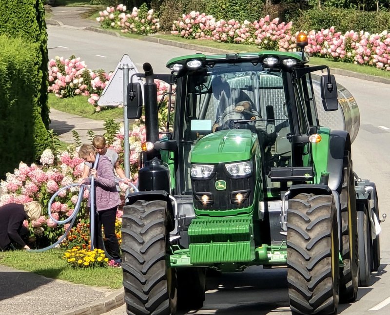 2. Jūžintams tekęs brangus traktorius, užuot tvarkęs kelius ir pakeles, tik laistė miestelio gėlytes. Redakcijos archyvo nuotr.