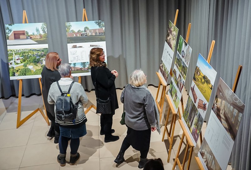 Ekspozicijoje galima pamatyti ir architekto Vytauto Putnos darbą – būsimąjį atvirą jaunimo centrą Smilgių miestelyje.